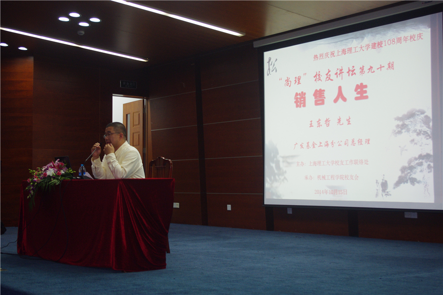 10月15日晚,为庆祝108周年校庆第90期尚理校友讲坛在我校图文信息中心阶梯报告厅举行。本次讲座邀请的嘉宾是金沙总站6165地址校友会理事、广发基金上海分公司总经理王东哲先生。