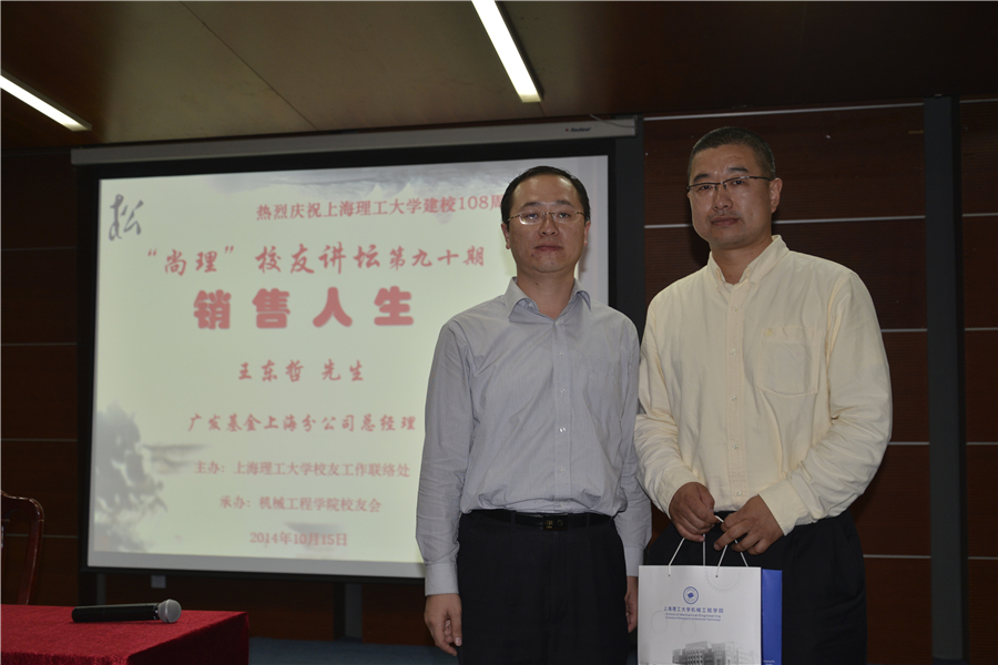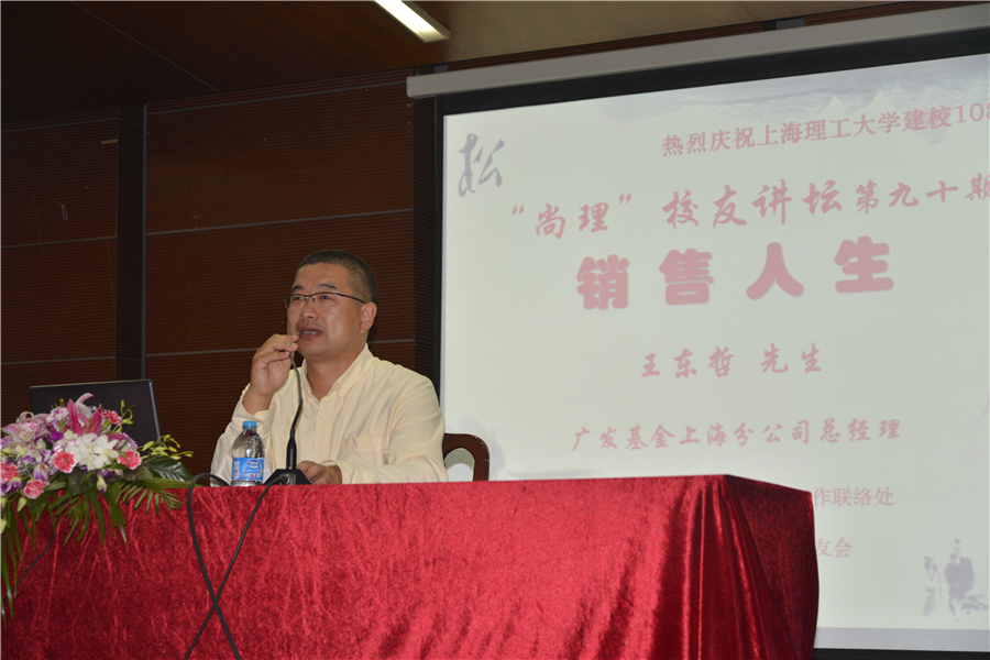 王东哲总经理是我校机械94级校友,在我校机械专业完成了本科、硕士学习后又考到上海交通大学,取得交大材料工程博士学位后,前往光大证券、广发基金从事行业分析研究、投行项目融资、基金销售营销等工作,特别是在销售方面他有着九年半的营销经验。借此机会再次回到母校他感慨万千,在尚理校友讲坛上,他以“友情爱情亲情”和“学业就业创业”六个小标题,与在座的本科生、研究生分享了他的大学时代和工作经历。