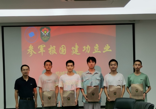 9月6日上午,在我校参军大学生即将开始入伍前封闭集训之际,我院在机械楼243室举行新兵欢送会,学院党委副书记、辅导员代表、军人服务中心代表、2021年退伍大学生代表一起欢送2021年秋季入伍大学生,开展座谈交流,表达学院对全体入伍大学生的关心关爱。