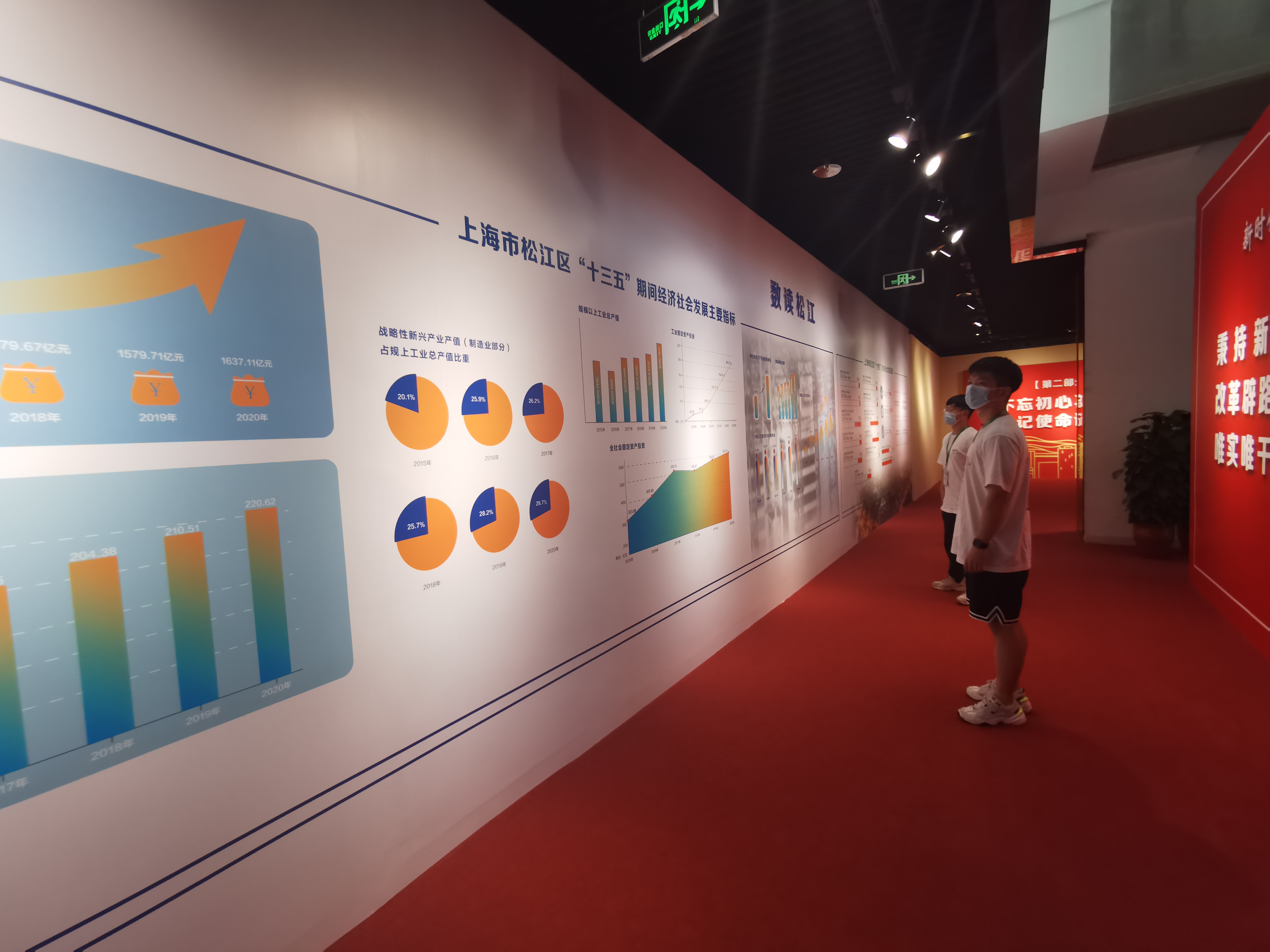 心中有信仰,脚下有力量。由松江区委、区政府主办的“永远跟党走——松江区庆祝中国共产党成立100周年主题展览”也于7月1日也在松江城市规划馆展出。