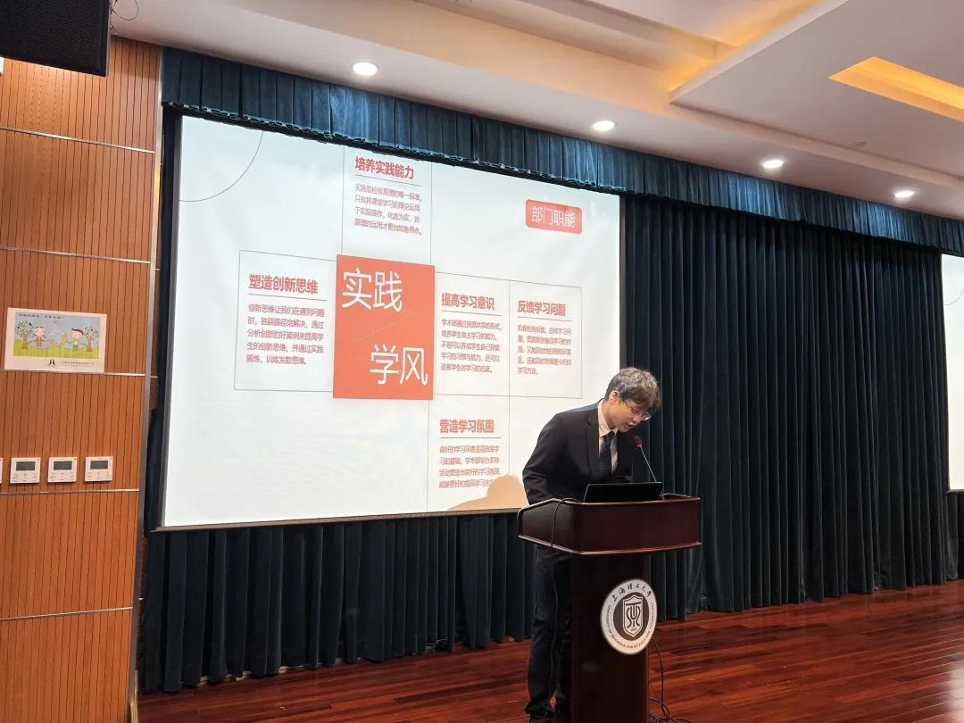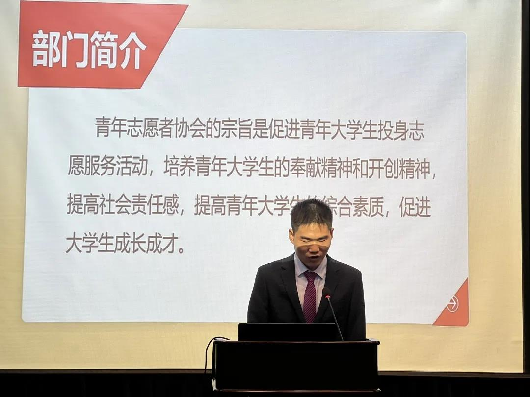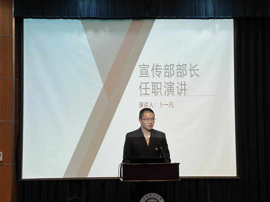 大会的下一项是各部门的部长任职宣讲。宣传部部长卜一凡、青年志愿者协会部长甘中才、综合事务部部长魏熠恺、学术实践部部长杨衍、文体部部长周力维、组织部部长付春晓共六位部长讲述了自己的任职期望。