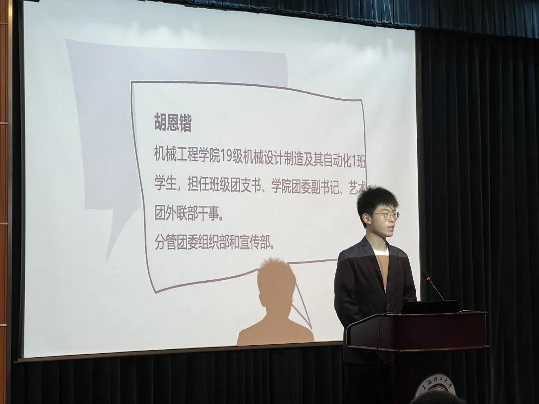 团委副书记胡恩锴提出自己的工作宣言,做同学找得到、靠得住、和同学打成一片的学生干部,期望能够切实的帮助到同学,为同学服务。