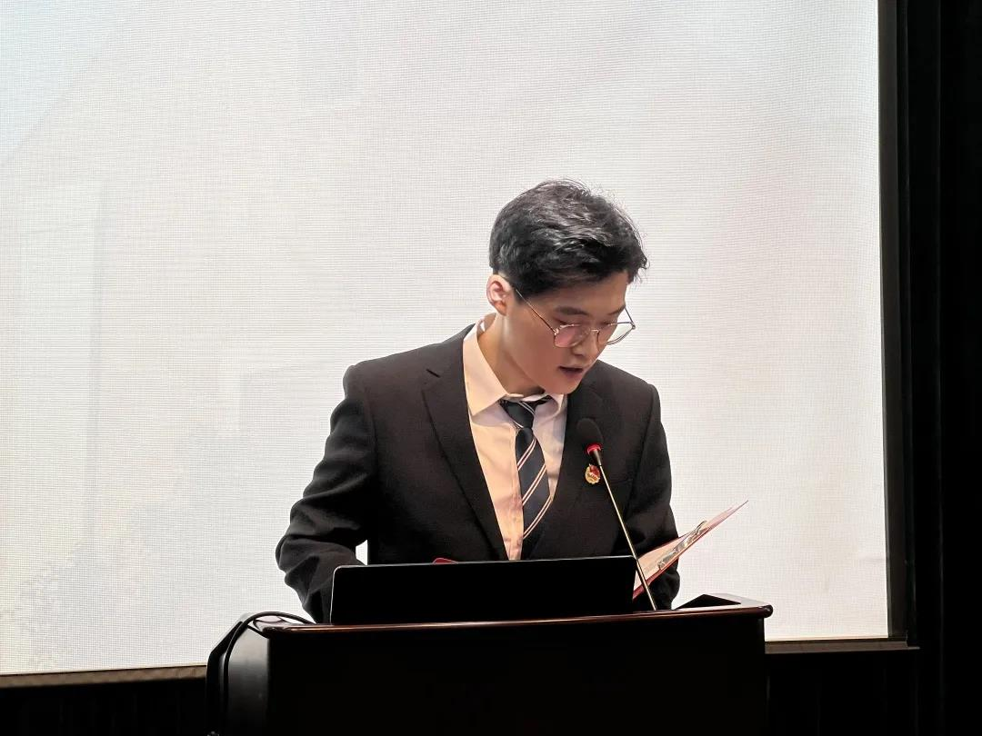 两位老师致辞完毕后,由学生会主席团发言。首先是现任执行主席华宇婷,她首先介绍了团委学生会改革的大致情况,接着对自己未来一年的工作提出设想。然后华宇婷同学还向新成员分享了自己的成员心得,并强调学习和工作的平衡性,最后,华宇婷主席对新一届团委学生会提出期望,在未来一年的共同努力,为学院增添色彩。范晨宇主席提出团委学生会应该是个和睦的大家庭,我们应该齐心协力为学院和学生服务。王心悦主席向我们介绍了自己加入团委学生会后的成长历程,并强调团结协作的重要性,希望新成员能在这个大家庭有所收获。