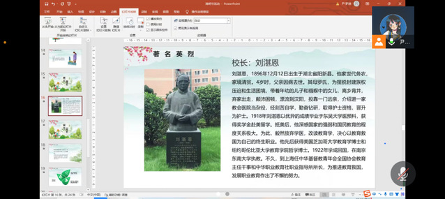 2、 宣讲革命故事,尤其是“离我们最近”的刘湛恩老校长的故事,同时向大家介绍革命战争中重要战役等,引导同学们继承先烈遗志、珍惜幸福生活、立志报效祖国。