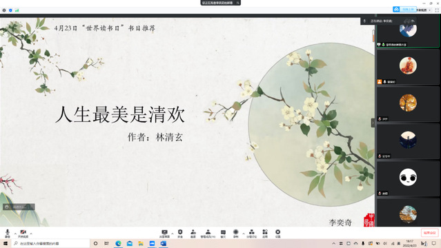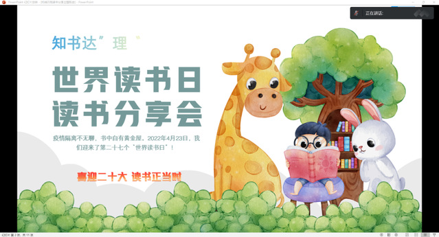 在主持人的带动下,依次进行世界读书日知识科普、书籍相关名言警句分享以及“拿起书本”倡议活动。大家在活动中更好地体会到了读书之乐、读书的意义所在,也收获到了相关知识的普及。