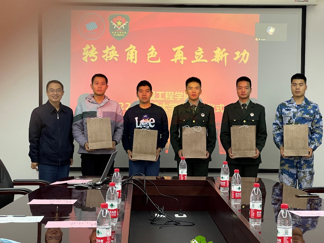 学院党委副书记范正飞代表学院欢迎大家在给国家建设做出奉献后返回母校继续学业或走向工作岗位,同时希望大家早日融入学校和社会的学习工作中,将部队培养的优良品质和坚强作风发扬下去,永葆军人本色,在国家发展和民族复兴的道路上能够贡献更多的力量。