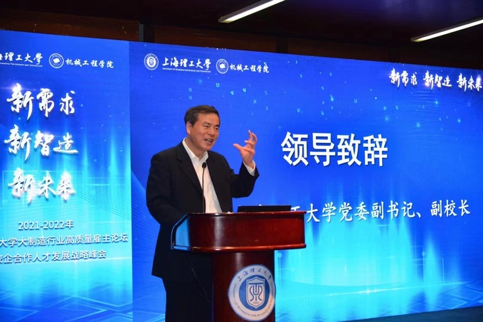 当前中国经济正处于由高速增长向高质量发展转型的过程中,伴随着产业升级,“智能制造”也成为未来制造业发展的必然趋势。“十四五”期间,坚定不移地实施制造强国战略,以智能制造为主攻方向,发展好制造业,做好制造业人才培养与输送,是国家、企业、高校等各方社会角色都应肩负的使命与任务。大会上,上海理工大学党委副书记、副校长盛春对应邀出席本次活动的雇主企业、专家学者表示由衷的感谢,并指出,当前“如何走好中国智能制造的发展之路”“如何培养优秀的中国制造人才”是高校与行业企业都应关注的问题,希望通过这样的论坛活动双方可以“深度交流”“激烈探讨”“迸发火花”“产生合作”“有所收获”。