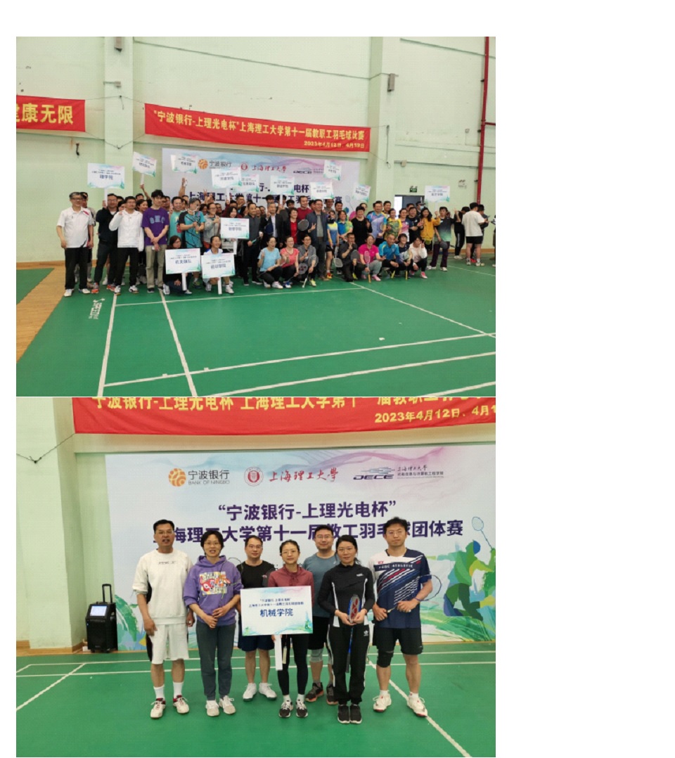 2023年4月12日下午,由宁波银行上海杨浦支行赞助,光电信息与计算机工程学院承办的2023“宁波银行-上理光电杯”上海理工大学第十一届教工羽毛球团体赛在军工路1100号羽毛球馆正式开赛。比赛共吸引来自校内各学院及部门组成的14支代表队,总参赛队员超百人。比赛采用团体赛方式进行,包括男双、女双和混双。金沙总站6165地址由孙涛,江小辉,张晓帅,姚晟靖,吕娟,黄瑶,董琴,吴薇等老师组队参赛,大家发扬“团结友爱、奋勇拼搏”的精神,赛出了友谊,赛出了健康,赛出了水平,虽然没有进入决赛阶段,但充分体现了健康生活、快乐工作的理念。