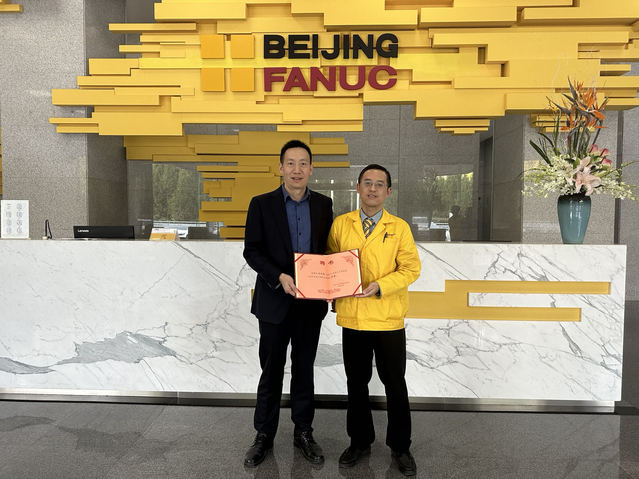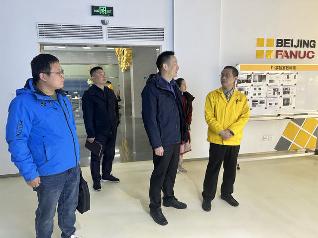 在刘振栋总经理的带领下,机械学院一行参观了发那科F+实验室,了解了F+实验室的成立初衷和运营情况。
