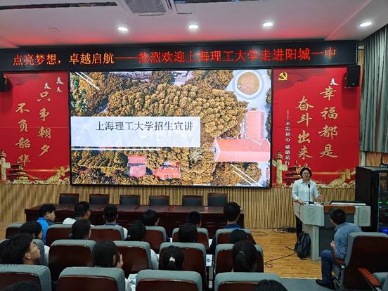 仪式后刘银华教授做了上海理工大学2024年的招生宣讲,分别从学校概况、院系专业、双创教育、升学就业前景、奖勤助贷体系等方面详细介绍了上海理工大学。