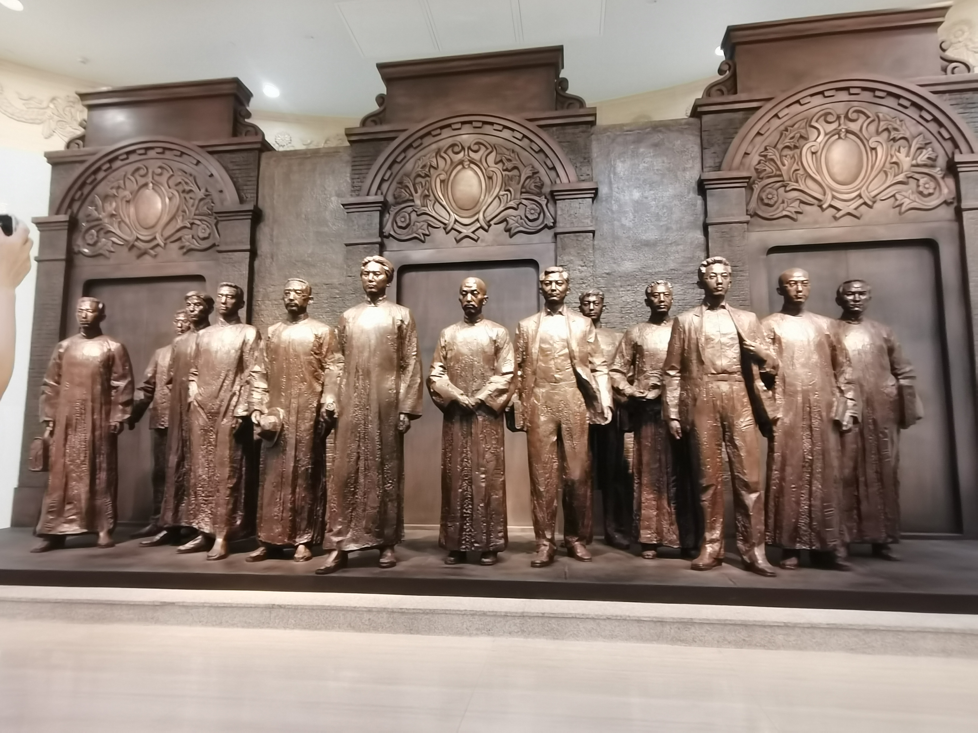 中国共产党第一次全国代表大会纪念馆前厅巨幅壁画带给同志们深深震撼,壁画由《日出东方》《民族脊梁》《中流砥柱》三幅作品组成,以祖国雄伟壮丽的自然山川、凝练文化精神的历史景观、见证奋斗征程的革命旧址艺术诠释党领导人民自强不息、砥砺奋进的光辉历程。