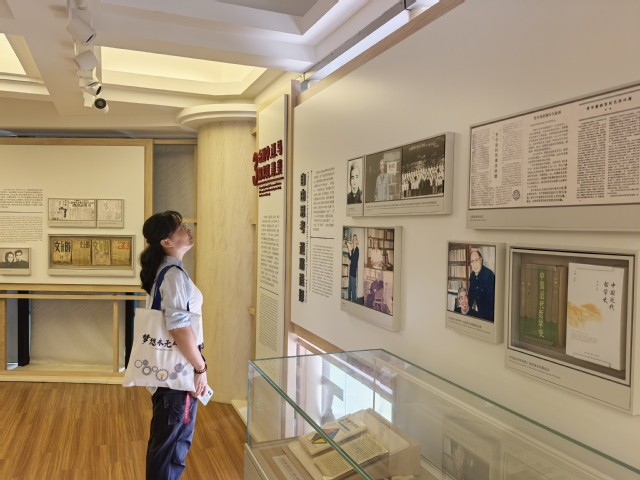 在专业讲解员的引导下,实践团成员依次参观了陈列室的五个主要展区,包括“古越哺英才 清华孕志向”、“颠沛救亡路 确然问道心”、“会通中西马 探求真善美”、“‘两化’育新人杏坛扬师德”和“文章誉四海 智慧传薪火”。通过丰富的历史文献、珍贵的图片和实物展品,实践团成员对冯契先生的一生有了更全面的认识,感受到了他在哲学领域的卓越贡献和对国家、民族的深厚情感。
