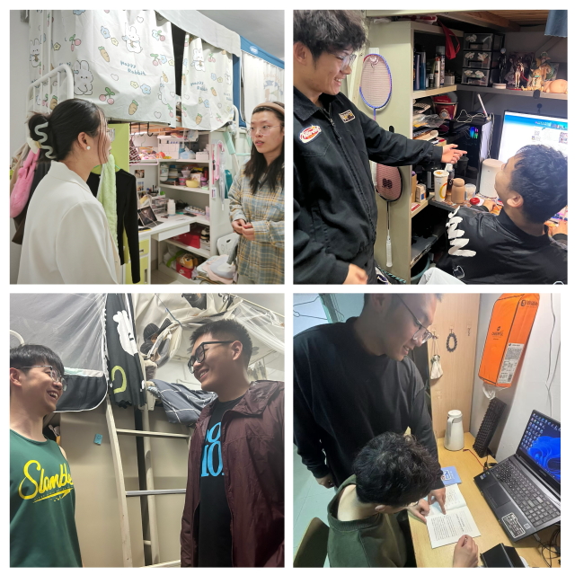在为期半个月的下寝室过程中,党员同志们对寝室学生情况、在校期间遇到的问题进行了详细的解答,积极鼓励新生参加研究生实践活动,锻炼自己的能力。重点围绕新生在思想引领、入党教育、专业学习、实践能力提升、参与班级和学校各类实践活动、日常生活等方面的问题答疑解惑,充分交流。对部分研究生新生学习不适应的问题,学生党员从自身经验出发列出切实可行的建议,帮助新生树立成长、成才的信念,以更高的标准来要求自己,帮助其深化对党的了解和认识,从而引导其积极向党组织靠拢。
