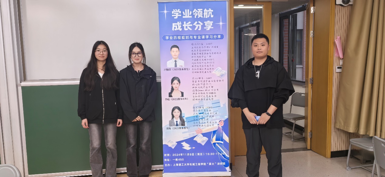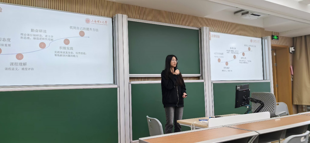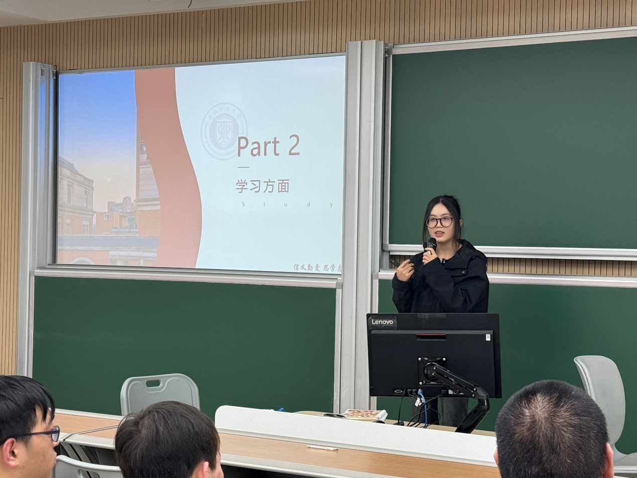 随后,吕翰超、李晓、伏蝶三位同学做了学业和成长分享。吕翰超同学分享了自己从认清大学生活,到树立学业目标,到规划学业过程,直至成功保研至西安交通大学深造的经历。他表示:“态度与认识是开始的动力。自信是坚持的勇气,清醒的认知是船的舵。” 李晓同学交流的主题是如何提高学业成绩,她带来了自己的课程笔记和学习进度清单,向大家展示了如何抽丝剥茧、攻坚克难,并最终取得课程好成绩。伏蝶同学则是分享了她的“逆袭之路”,她从大二的平平淡淡到大三的突飞猛进,既有学习态度的端正,也有自己对课程的理解和对方法的总结。