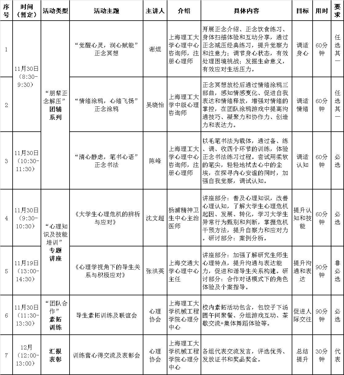 上海理工大学“秋炫沪江”融心悦理工作室之心理赋能训练营