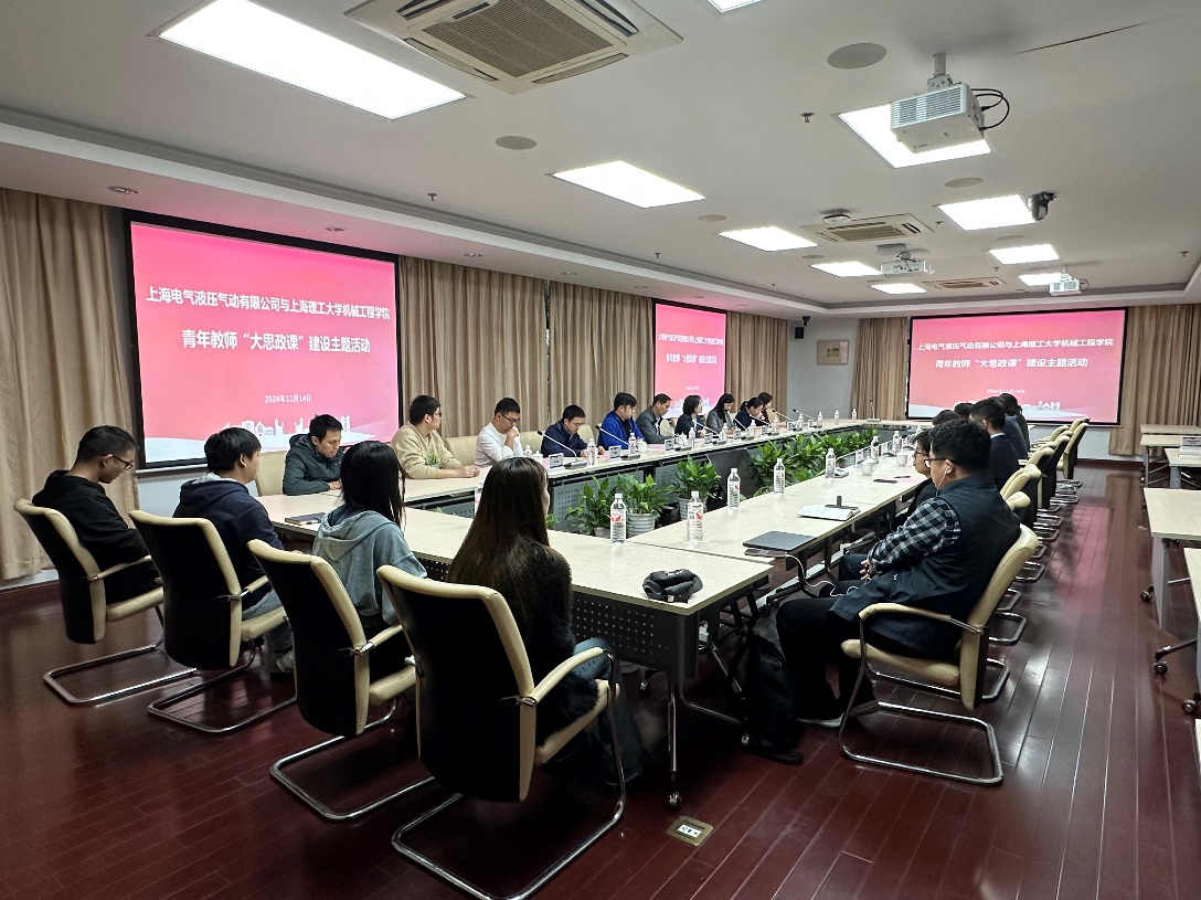 签约仪式上,一场依托机械学院青年教师联谊会,由机械学院与上海电气液压气动有限公司联合举办的“大思政课”建设主题活动别开生面的举行。上海电气李斌/陈勇工作室领衔人陈勇、电液控制室经理马琛俊,以及学院机械中德专业负责人叶卉分别就个人的成长与发展、“李斌精神”的传承与创新、以及课程思政领航探索进行了专题报告,为青年教师和毕业生未来的职业发展指明方向,深入探讨了将价值引领融入专业教育的实践路径,充分彰显了校企合作在人才培养和文化传承中的重要作用。