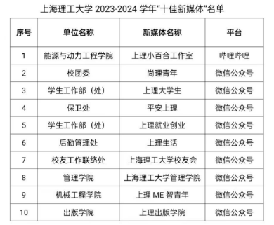 今日,学校公布上海理工大学2023-2024学年“十佳网站”“十佳新媒体”名单。经申请和评审,金沙总站6165地址网站及微信公众号“上理ME智青年”分别入选“十佳网站”“十佳新媒体”荣誉称号。这一荣誉的获得,是对学院在新闻宣传工作与新媒体建设运营方面所做努力的充分肯定。