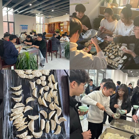 食堂精心准备了饺子皮、不同馅料以及包饺子所需的工具,确保每位参与者都能体验到包饺子的乐趣。同学们纷纷落坐,着手准备,食堂经理耐心传授包饺子技巧,老师们一边包饺子一边与同学们闲话家常,了解大家近期的学习和生活情况。从馅料的填充到褶皱的捏制,每一个细节都充满了欢声笑语,形状各异而又不失俊俏的饺子在大家的巧手下诞生。袁喜勇同学说:“这次迎冬至包饺子活动举办的很成功,每个同学都精心参与其中,形状各有千秋,南北风格略有不同,但核心是一样的,都是为了祝福美好的生活,希望这个活动能够延续下去。”高一通同学说:“这次冬至包饺子活动让我对传统文化有更深理解。它不再是书本上的文字,而是实实在在的生活体验,相信未来岁月,这将成为心中珍贵回忆,激励我珍惜校园时光,积极融入集体生活。”张运彬同学说:“ 这次活动最大的收获就是让我一个南方人学会了包饺子,准备的馅料种类很多,味道很不错,还有食堂大厨教我们一些小技巧,包饺子过程很暖,氛围很好。”偶德龙同学说:“和老师、同学们在冬至来临之际一起其乐融融的包饺子,让我们身在异乡的学子深深感受到学院的温暖,拉近了同学之间的距离,促进了彼此的感情,激励着我们更好的学习与生活。”