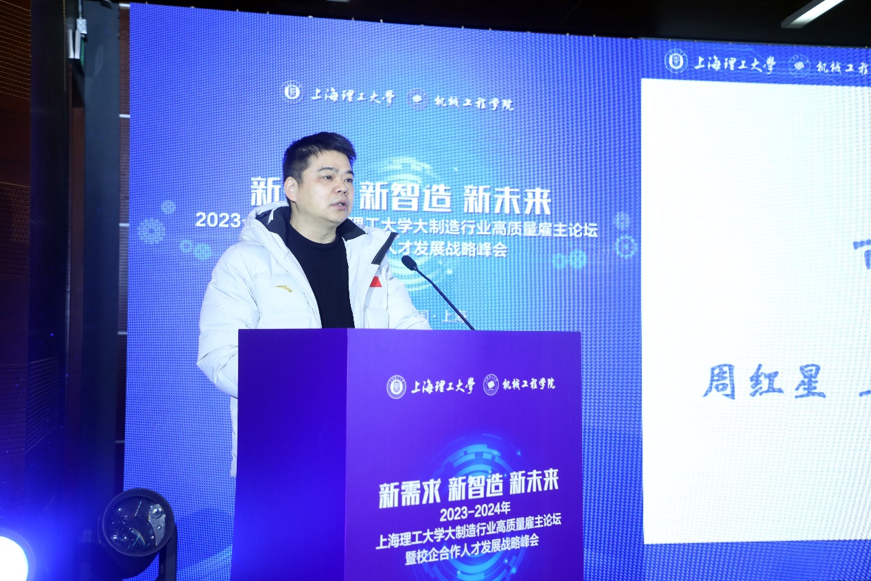 1月10日,上海理工大学第二届大制造行业高质量雇主论坛暨校企合作人才发展战略峰会在图文信息中心举行。60余家智能制造企业、110位企业技术专家和人力资源专家走进上理工,进一步深化产教融合、科教融汇,推进制造业高质量发展,深入探索高层次卓越工程人才培养新路径。上海市教育委员会学生处副处长周红星、上海理工大学党委副书记、副校长刘德强以及上海交通大学、同济大学、华东理工大学、东华大学、上海大学、上海第二工业大学、上海工程技术大学、上海应用技术大学和我校学生工作部(处)、研究生工作部、校团委、金沙总站6165地址相关领导嘉宾出席。开幕式由机械学院党委副书记韦彪主持,峰会主论坛报告由机械学院副院长姜晨主持。