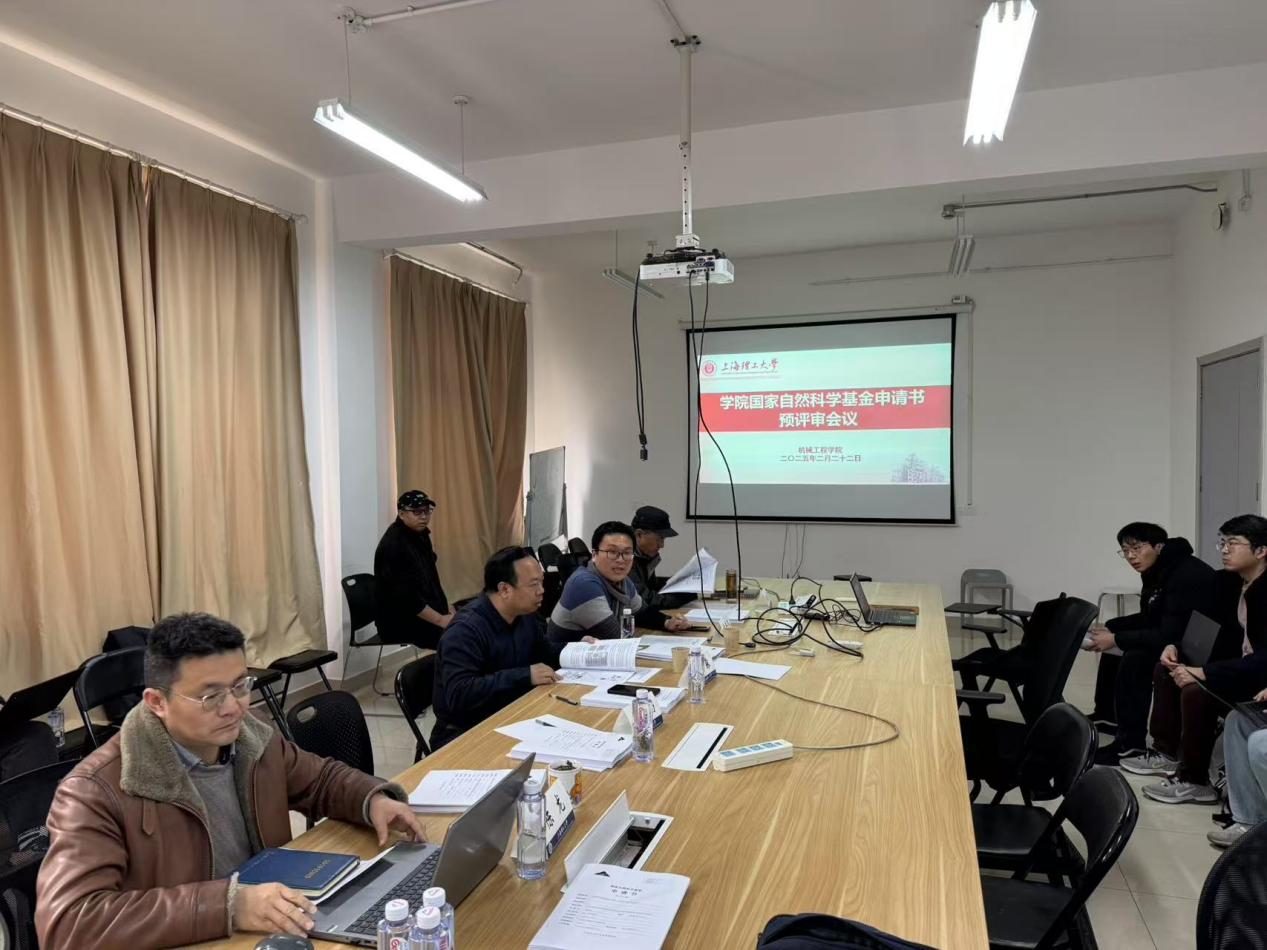 仪表二馆405会场,对机制、机电、机设、机器人系遴选出的申请书进行评审,特邀请复旦大学孔令豹教授、东华大学张洁教授和学院李卫东教授、朱大奇教授、江小辉教授、陈琦教授担任评审专家,相关系部本年度申请国家自然科学基金的20余位教师与会,会议先后由朱大奇教授和李卫东教授主持。