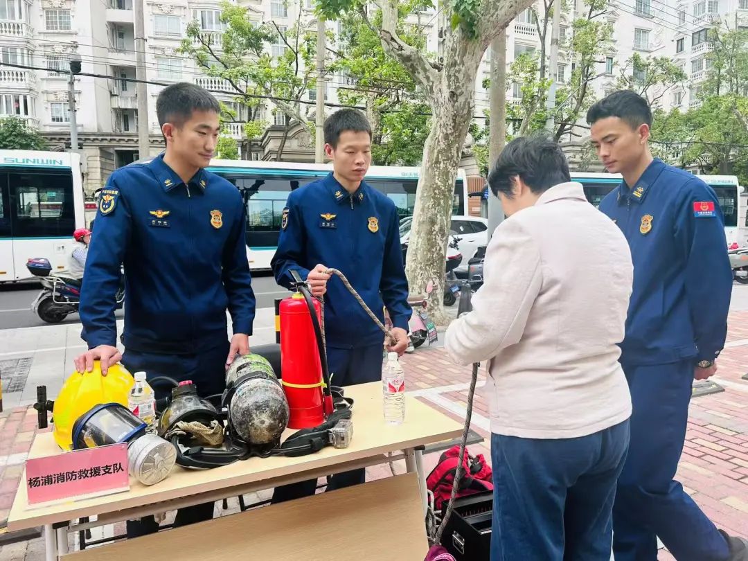 每个服务点位都对应着前期调研梳理的社区需求清单。长海医院的义诊区人头攒动,内分泌科专家为居民解读体检报告;杨浦消防救援支队的高楼逃生体验区里,居民们认真学习消防技巧。