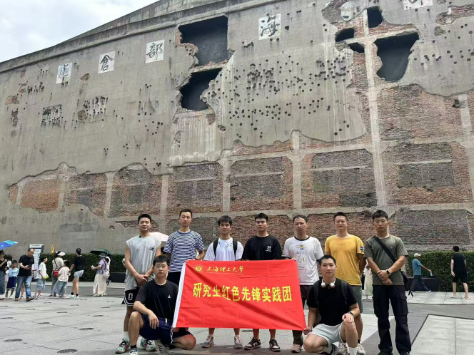 在中国航海博物馆,同学们驻足于一件件厚重的航海文物前,循着时间的脉络,回顾中华民族从闭关锁国到向海图强的百年沧桑。巨轮模型、航海仪器和泛黄的海图无声地诉说着一代代人的探索与牺牲,激发了同学们对强国之路的深刻思考。移步工业设计博物馆,时光仿佛倒流至民族工业初兴的年代。老式机床、早期产品和设计手稿勾勒出实业救国的艰难历程。同学们在此感受到的不仅是历史的厚重,更是一种精神的传承——正是这种自力更生、精益求精的工匠精神,支撑着中国工业从无到有、由弱变强。行程的终点定格在四行仓库抗战纪念馆。面对那面弹痕斑驳、沧桑依旧的西墙,时光仿佛凝固在了1937年的那个秋天。肃立在这座曾经浴血奋战的堡垒前,同学们屏息凝神,那些英勇无畏的身影仿佛穿越时空,叩击着每个人的心灵。